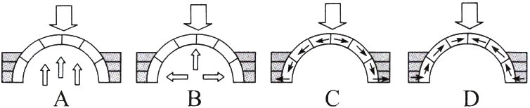 (1)赵州桥的拱形形状是薄壳结构,薄壳结构在受到外力作用时,能够把力沿着整个壳体表面向四周传递,使壳体单位面积上受到的力并不大,更为重要的是,在壳体上不存在作用力集中于一个地方的情况。下列对薄壳结构受力示意图分析正确的是______(填字母)。