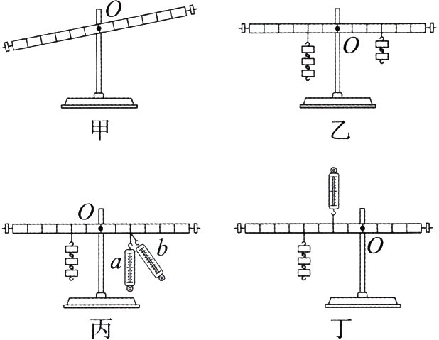 C.图丙中当杠杆在水平位置平衡时,弹簧测力计a、b示数相同