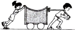 4. 如图所示,两个人分别用F1 = 100N和F2 = 80N的力推车和拉车,并且两个力在同一水平直线上,则车受到的推力和拉力的合力是 ( )