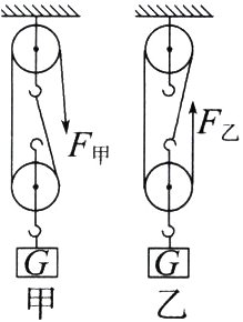 7. 如图所示,甲、乙都是由一个定滑轮和一个动滑轮组成的滑轮组,但是它们有不同点。请回答下列问题。