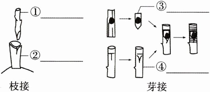 @@(1)芽 (2)①接穗 ②砧木 ③接穗 ④砧木(3)形成层