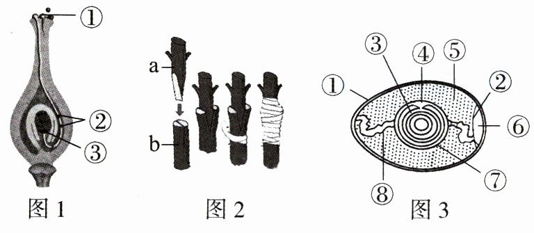 (2)活动二:尝试嫁接。二组的同学模仿图2,把鸭梨的枝条a作为______,嫁接到杜梨的树桩b上。为了确保a成活,关键的操作是________________________,还要为植株提供适量的水和无机盐。你预测将来a上结出的是______(填“鸭梨”“杜梨”或“具有鸭梨和杜梨性状的果实”)。果农常常选择这种方式繁殖果树的原因是______________________(写出一点即可)等。