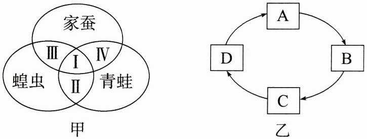 D. 图乙如果表示青蛙的发育过程,若D是受精卵,则A是蝌蚪