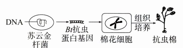 14.(科学思维)科学家从苏云金杆菌中获得Bt抗虫蛋白基因,并将其导入棉花细胞中,培育出新型棉株。该棉株的细胞中存在抗虫蛋白(Bt抗虫蛋白),从而导致以该棉株为食的棉铃虫死亡。请据图回答问题:
