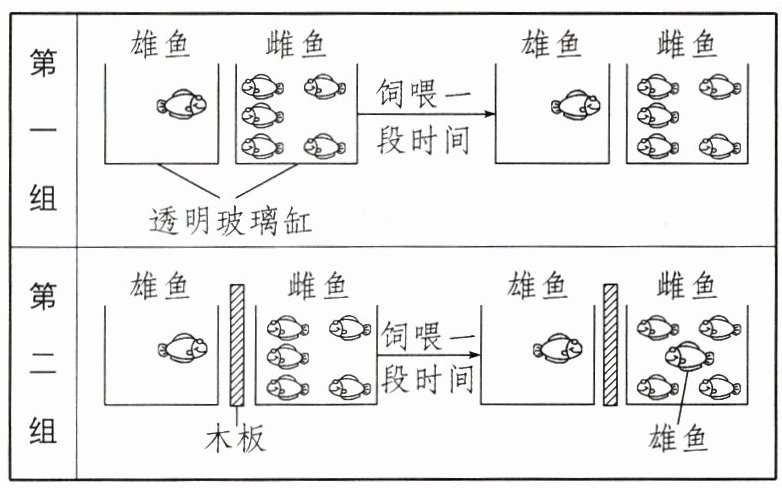 12. 营群居生活的红鲷鱼有一种奇怪的现象,即在缺少雄性红鲷鱼的雌鱼群体中,总会有一条雌鱼变成雄鱼,且身体也变得比其他雌鱼健壮。为解释这一现象,有人做了如下两组实验(注:两组红鲷鱼生长状况,实验装置、条件及时间都相同)。该实验说明( )
