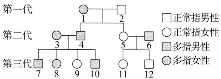8. 人的多指是一种基因遗传病,如图是某家族该病的遗传系谱图,数字1~12表示不同个体。若A表示控制显性性状的基因,a表示控制隐性性状的基因。请据图回答问题: