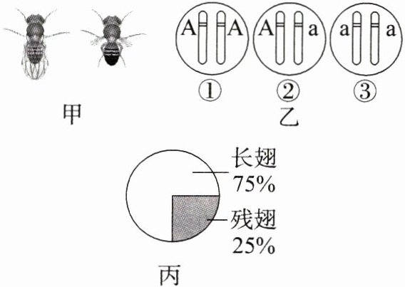 (3)图丙中,子二代果蝇的长翅与残翅的数量比是_______,其中长翅果蝇的基因组成是图乙中的_______(填序号)。