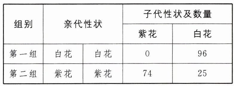 (1)豌豆花色的紫色和白色在遗传学上称为一对________性状,是由________控制的。第一组中亲代是白花,子代也是白花的现象叫________。
