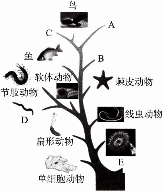 (1)请写出A、B、C、D、E代表的动物类群:A代表__________;B代表__________;C代表__________;D代表__________;E代表__________。