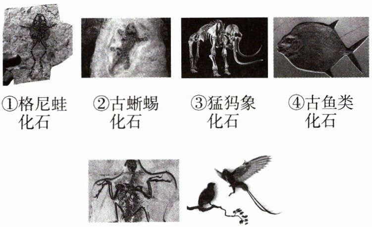 8.(生命观念)(2023·山西太原中考)暑假里,凡凡和几位同学参观了中国古动物博物馆,被各种各样神奇的化石深深吸引。以下是他们看到的化石中的一小部分,请你观察、分析、比较,结合所学知识回答问题: