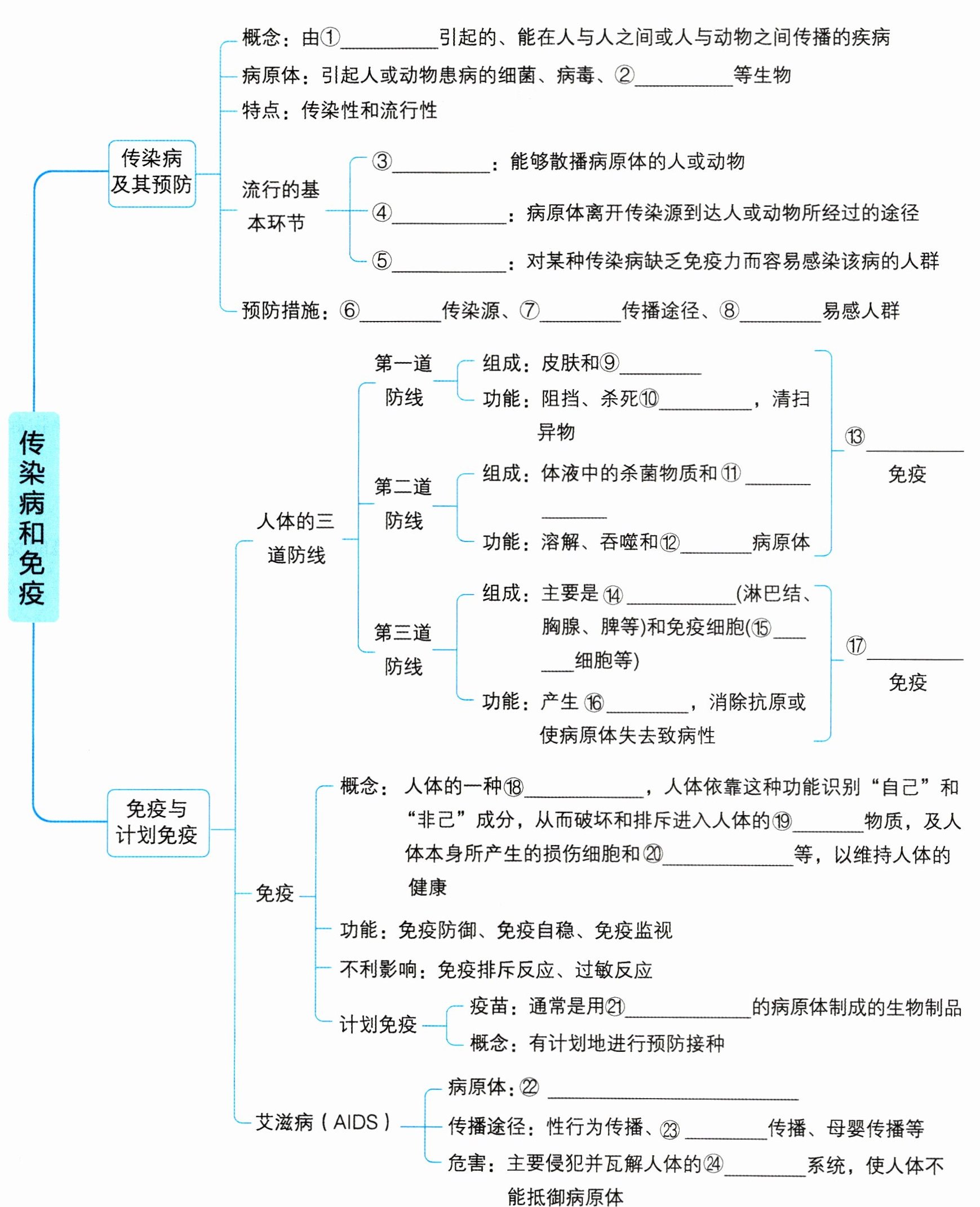@@⑱生理功能 ⑲抗原 ⑳肿瘤细胞 ㉑失活的或减毒 ㉒人体免疫缺陷病毒(HIV) ㉓血液 ㉔免疫