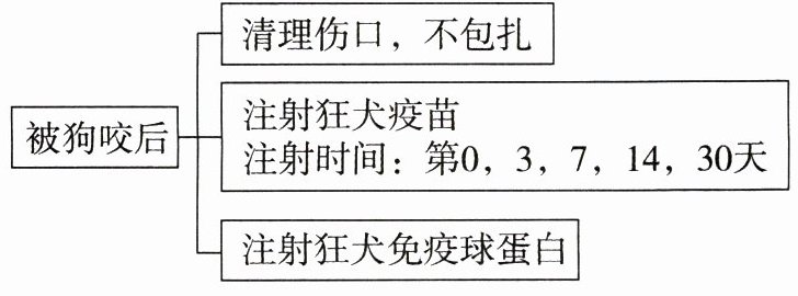 8.(2024·河南周口模拟)狗是人类忠实的朋友,可以看家护院或者陪伴人们,但也会有狗咬人等危险事情发生。如图为某人被狗咬后的处理和治疗情况。下列叙述错误的是( )