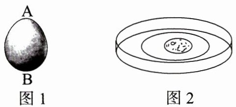 (4)用剪刀将开口处的内壳膜剪破,将卵壳内的物质轻轻倒入培养皿中(如图2所示)进行仔细观察,可以发现卵黄在系带的牵引下悬浮于卵白中,卵黄的表面有一个乳白色小圆点,该结构就是______。