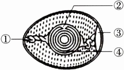 4. (2024·江西中考)“小燕子,穿花衣,年年春天来这里。”儿歌中的小燕子每年飞回繁殖地产卵,产出的受精鸟卵(如图)能孵化成雏燕的部位是( )