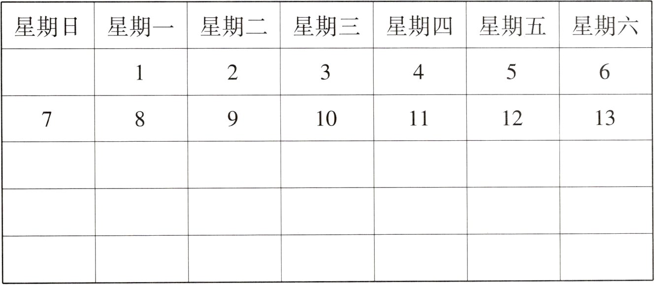 3. 这个月的第三个星期日是父亲节,是( )月( )日。