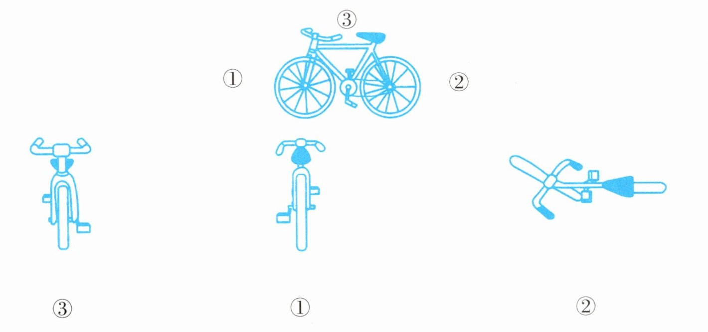 二、下面的三张照片是在自行车的哪个位置拍到的?连一连。