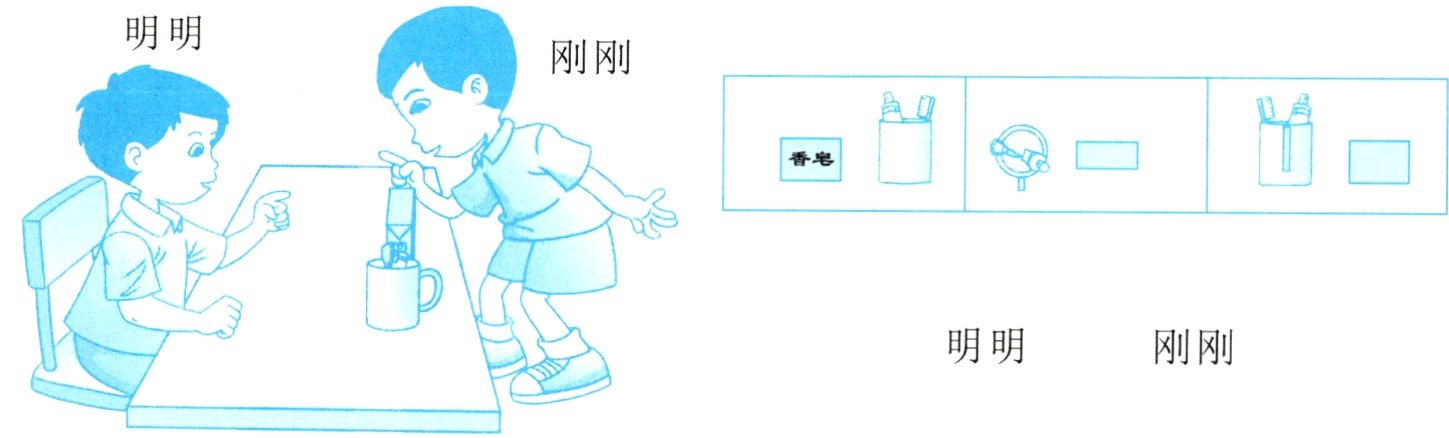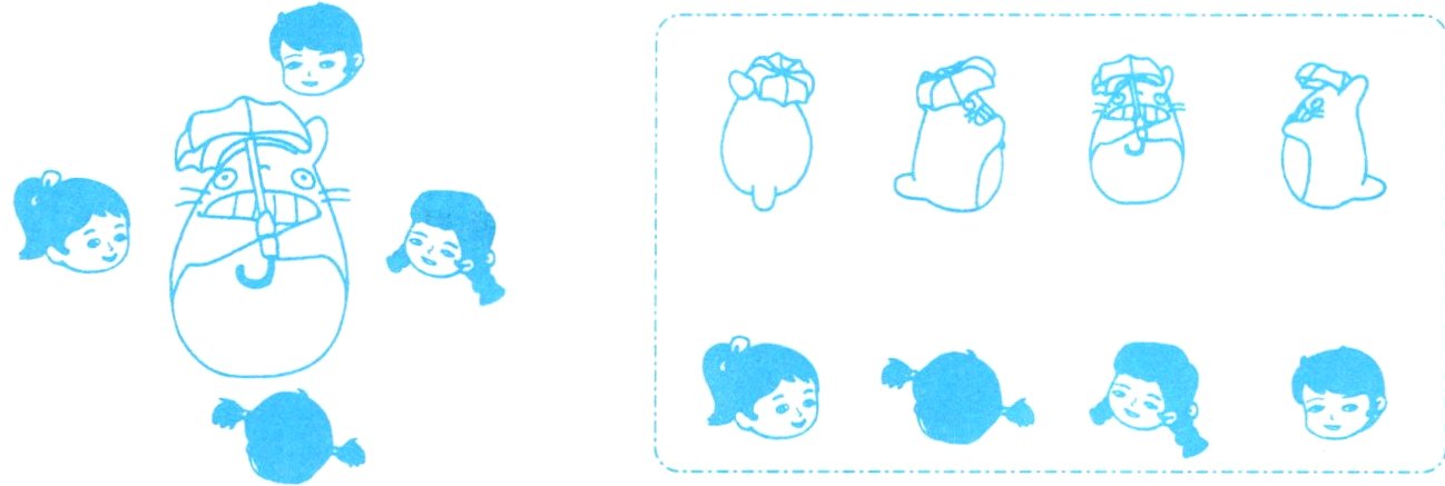 三、右面的图分别是谁看到的?在括号里写上他们的名字。
