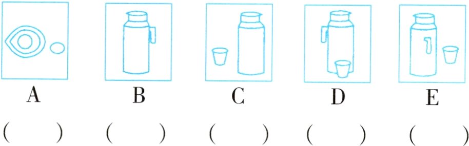 五、请仔细观察A、B、C、D、E各图,判断这五张相片分别是在哪里照的,在括号里写上照相位置的序号。