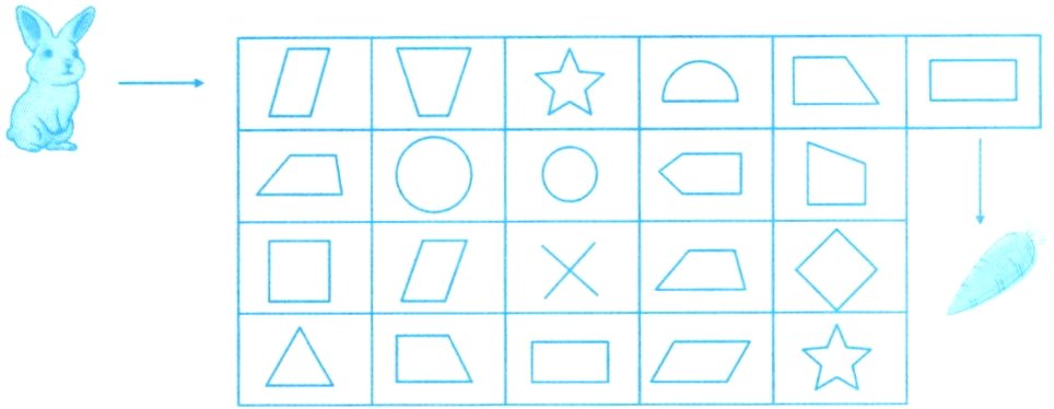 四、小兔只能走四边形的格子才能吃到胡萝卜,请帮小兔画出路线。