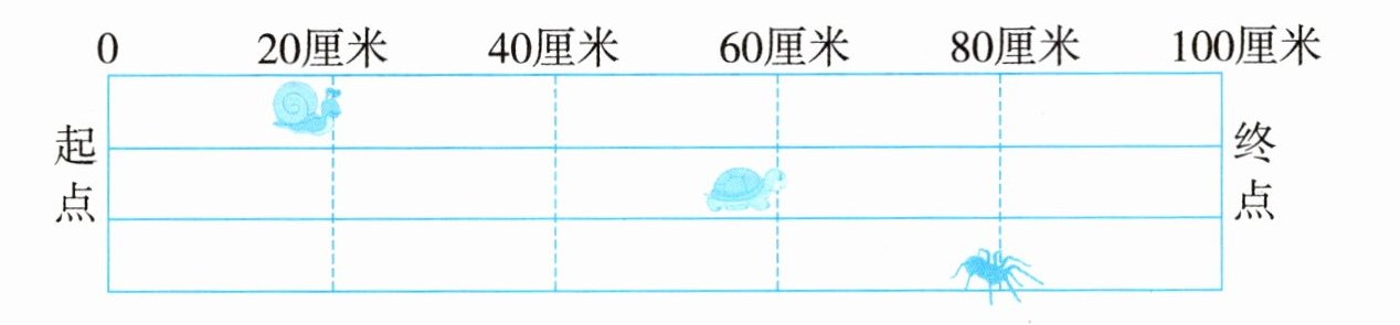3. 蜘蛛比乌龟多爬行( )厘米。