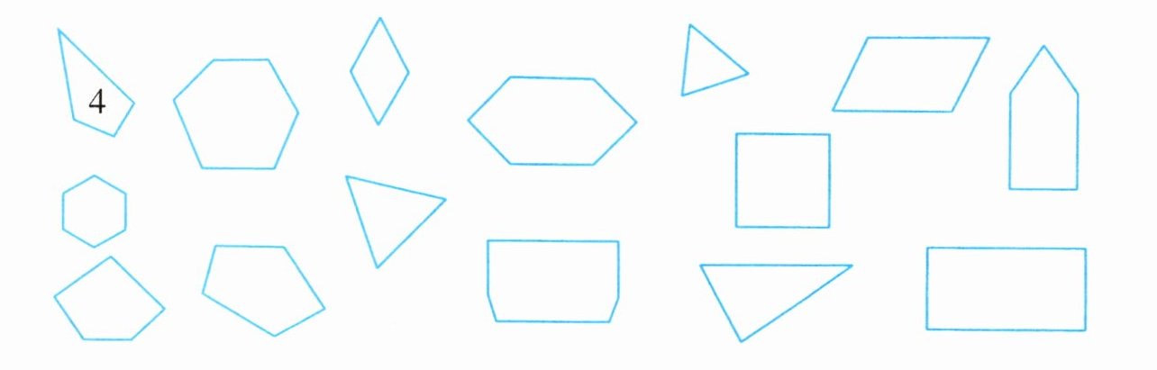 一、数数下面的图形各有几条边,照样子写一写,再填表。