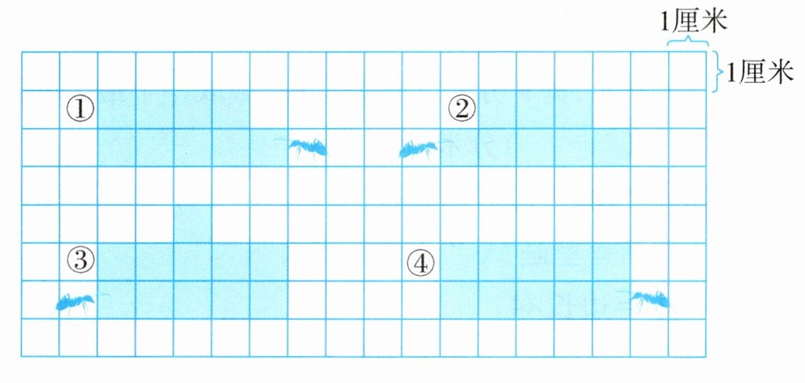 ①号:14厘米 ②号:14厘米 ③号:16厘米 ④号:14厘米 14<16,③号蚂蚁走的路线最长。