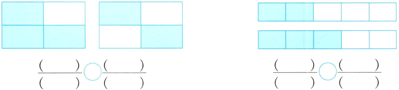 5. 先用分数表示图中的涂色部分,再比较每组分数的大小。