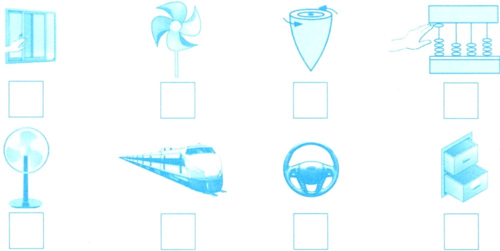 二、判断下列物体的运动是平移现象还是旋转现象,平移现象的画“△”,旋转现象的画“○”。