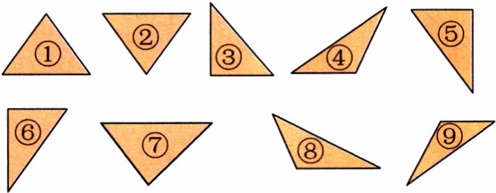 (1)三角形按角分类,分为( )三角形、( )三角形和( )三角形。
