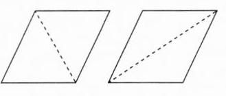 5. 把一个四边形分成两个完全一样的锐角三角形,应该怎样分?分成两个完全一样的钝角三角形呢?在图上画一画。