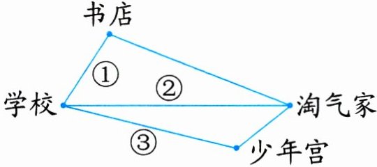 (3)从学校到淘气家有三条路,走第②条路最近。下列解释错误的是( )。