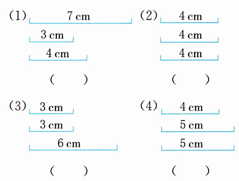 1. 下面哪三条线段可以围成一个三角形?在括号里画“√”。