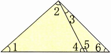 4. 已知∠1 = 42°,∠2 = 75°,∠3 = 18°,求∠6的度数。