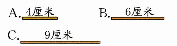 7. 长是 2 厘米和 8 厘米的两根小棒,可以和下面的( )小棒摆成一个三角形。