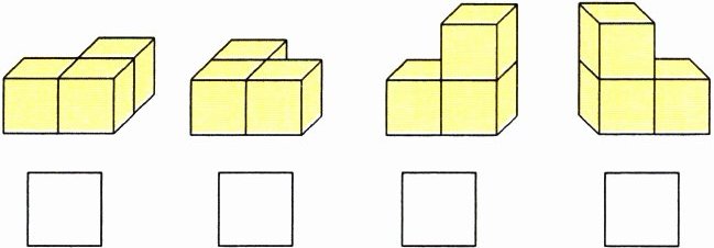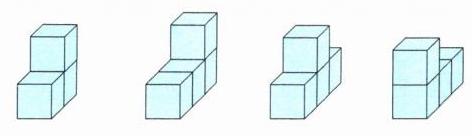,用 3 个正方体可以怎样搭?搭一搭,并分别画出从左面、正面和右面看到的图形。
