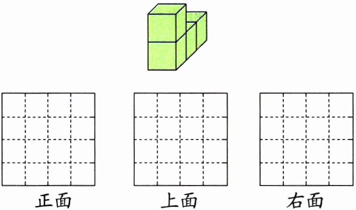 2. 分别画出从正面、上面和右面看到的图形的形状。