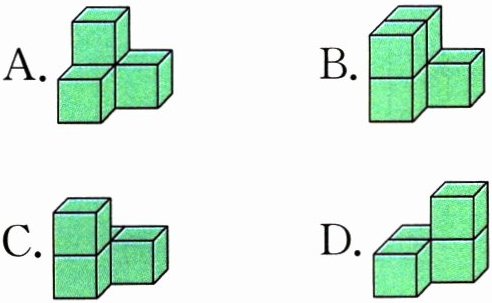 (2)由4个小正方体搭成的立体图形,从不同方向看到的形状如下。