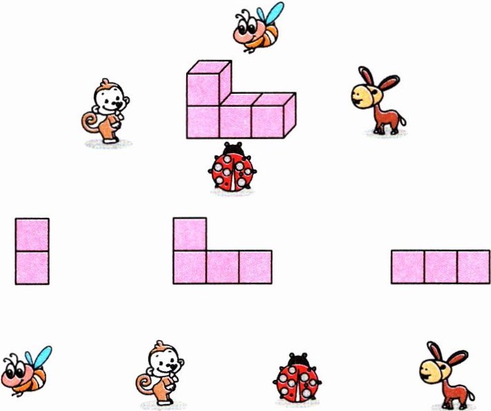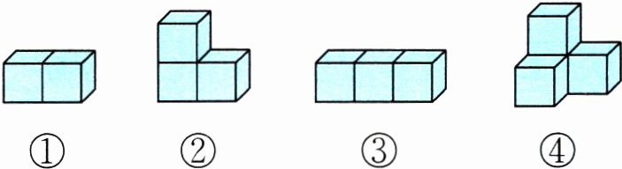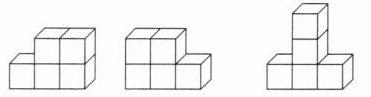 (3)用了 3 个正方体:从正面看是 3 个正方形;从右面看也是 3 个正方形,从上面看只有 1 个正方形。它是( )号立体图形。