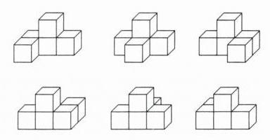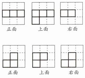 5. 在右图中添 1 个正方体,要使从左面看到的形状不变,有( )种不同的添法;要使从上面看到的形状不变,有( )种不同的添法;要使从正面看到的形状不变,有( )种不同的添法。