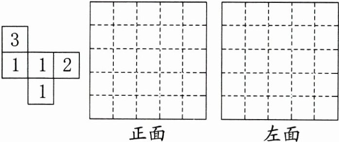 4. 下图是从上面看一些小正方体所搭立体图形的平面图形,方格中的数字表示该位置的小正方体的个数。请你在方格纸中分别画出这个立体图形从正面和左面看到的图形。