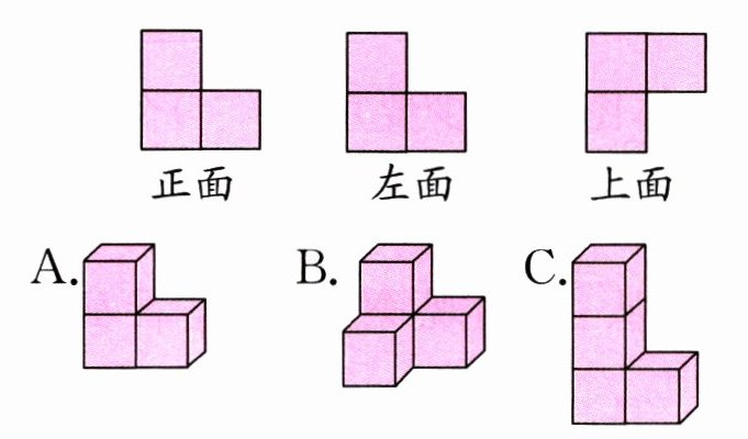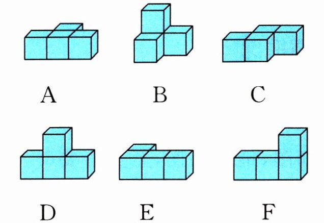 - (5)如果把下面立体图形中最右边的小正方体拿走,那么( )看到的形状是不变的。