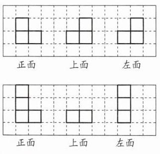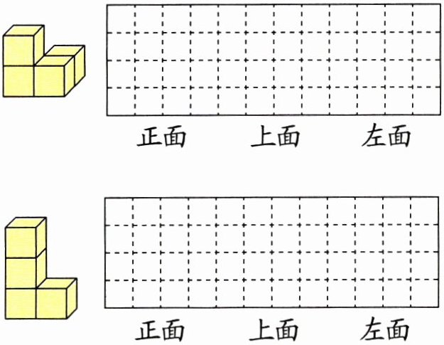 。观察搭好的立体图形,在方格纸上画出从左面看到的形状。