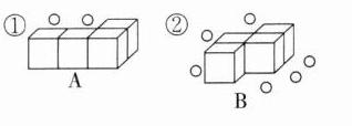 - ②给图B添上一个相同的小正方体,使其从右面看到的形状不变。(请在相应的位置画“〇”)