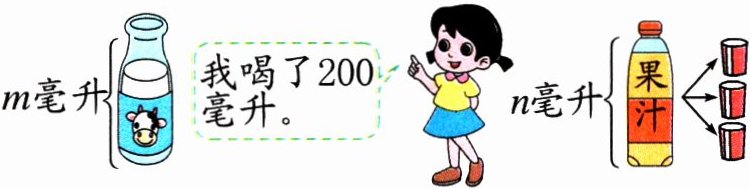 还剩( )毫升牛奶。 每小杯果汁有( )毫升。