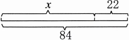$x + 22 = 84$,$x = 62$@@$x - 9 = 3.5$,$x = 12.5$