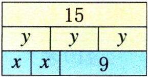 $2x + 9 = 15$@@$3y = 15$@@3@@5