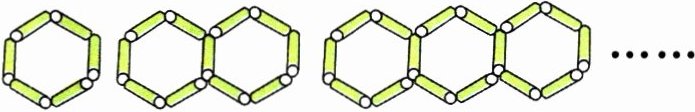 (1)摆 2 个六边形要用( )根小棒,摆 3 个六边形要用( )根小棒,摆 n 个六边形要用( )根小棒。