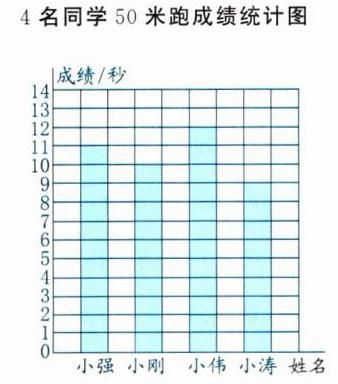 3. 下面是4名同学50米跑成绩的统计表,请根据表中数据绘制统计图并回答问题。