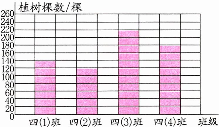 1. 四年级同学在参加植树活动。下图是他们植树情况的统计图。