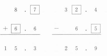 $\begin{array}{r}8.\square\\+\square.6\\\hline15.3\end{array}$ $\begin{array}{r}3\square.4\\-6.\square\\\hline25.9\end{array}$